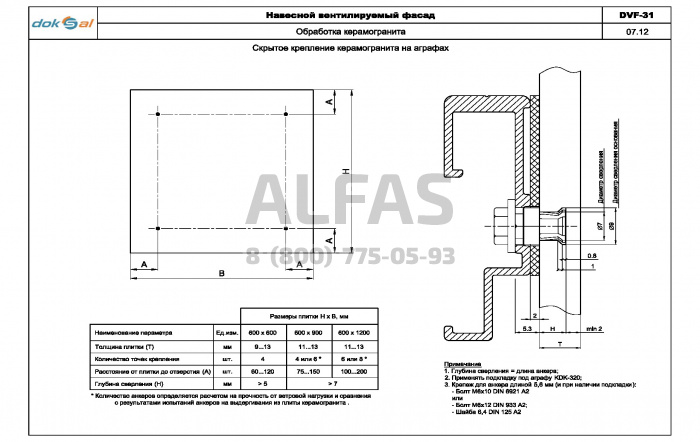 Серия DVF-31 предназначена для крепления керамогранита со скрытым креплением.