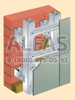Облицовка крепится на систему вертикальных и горизонтальных направляющих.