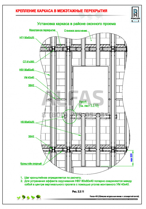 Возможна система крепления как по всей поверхности стены, так и исключительно в межэтажные перекрытия.