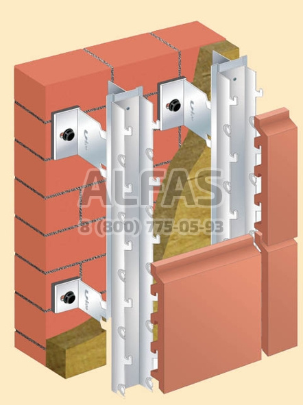 Система предназначена для скрытого способа крепления терракотовых керамических панелей.